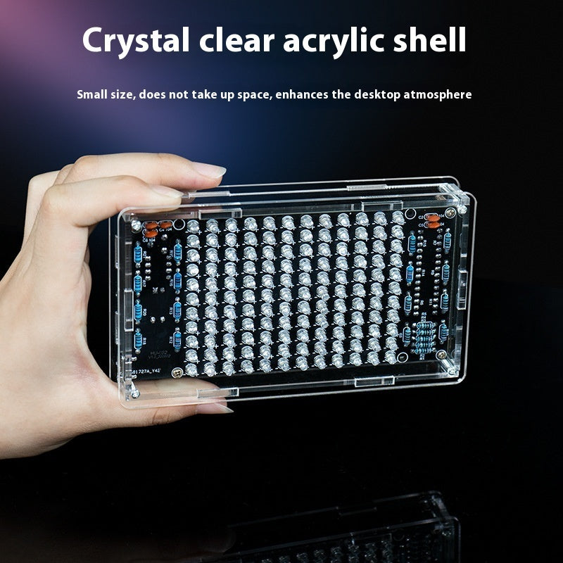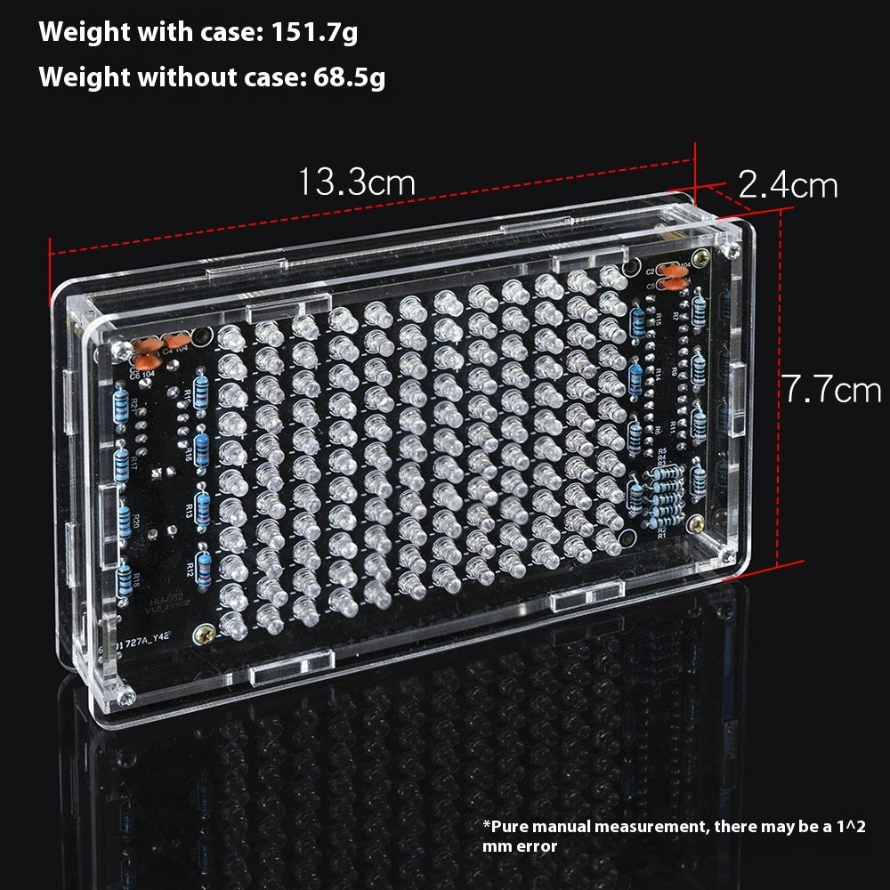 - Kernbauteile auf kleinem Board: Vibrationsempfänger, moderner Ein-Chip-Mikrocontroller, kompakter Verstärker und ein LED-Array auf einer handlichen 123 × 62 mm PCB sorgen für eine klare Spektrum-Visualisierung.