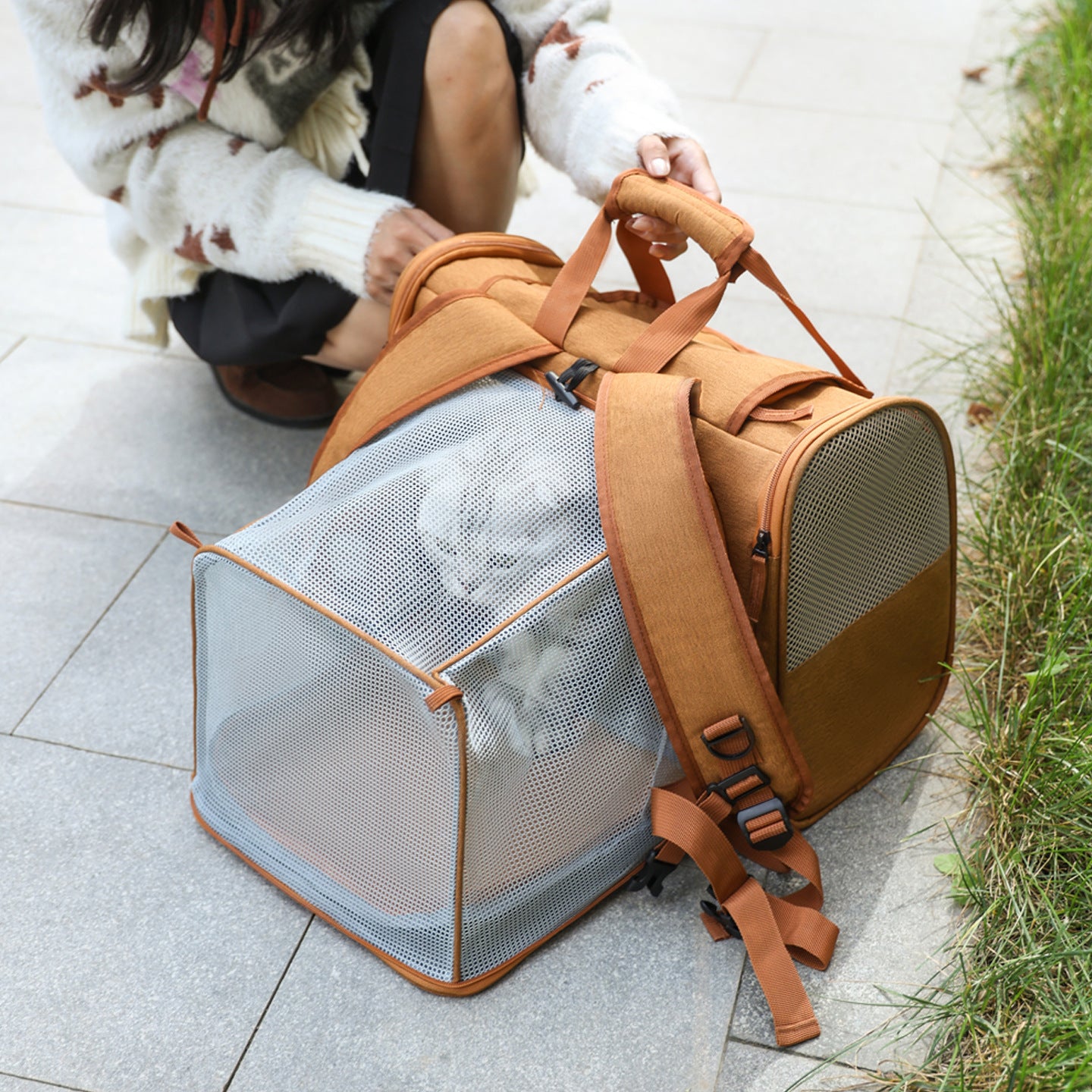 Reisen Sie entspannt mit Ihrem Stubentiger – diese Outdoor-Katzentragetasche bietet belüfteten Komfort, Tragbarkeit und einen großzügigen Innenraum.