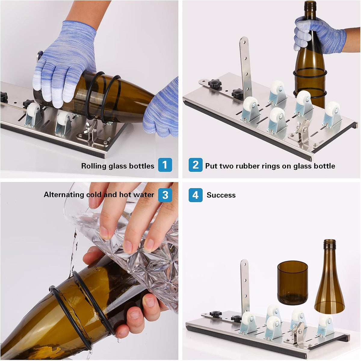 Care & Passform: Kompatibel mit gängigen runden Glasflaschen unterschiedlicher Größen; einfache Handhabung auch für Einsteiger. Nach dem Schnitt Klingen prüfen und Flächen leicht schleifen.
