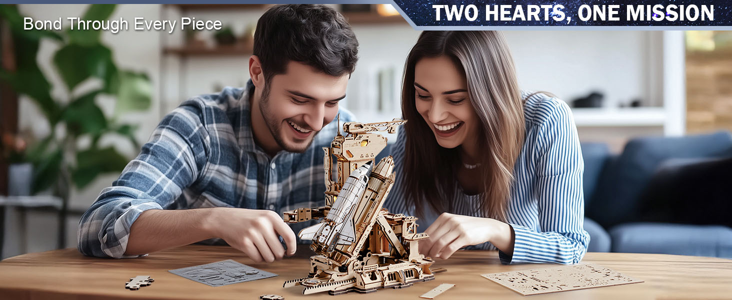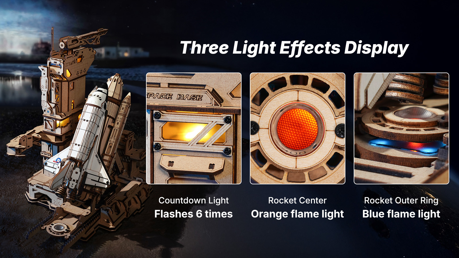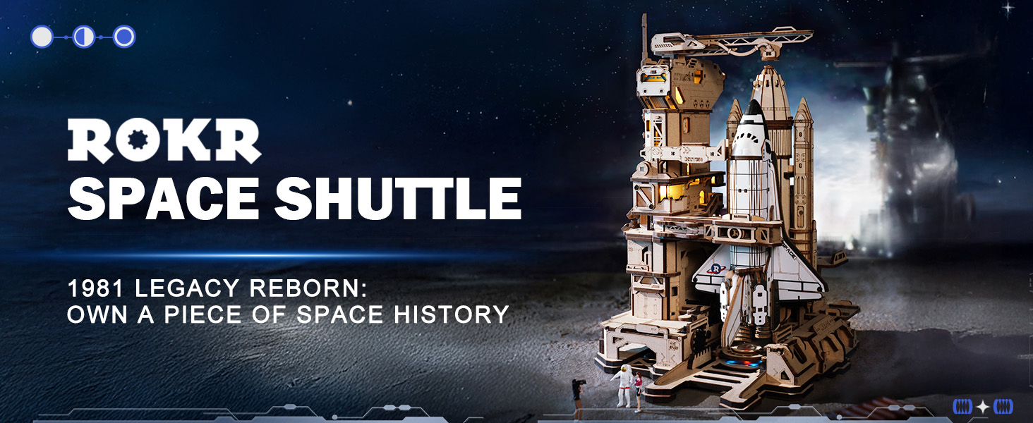 ROKR 3D Wooden Space Shuttle Model Kit - 446-piece STEM Building Toy With Launch Simulation And LED Light Effects, DIY Puzzle, A Unique Gift For Space Enthusiasts